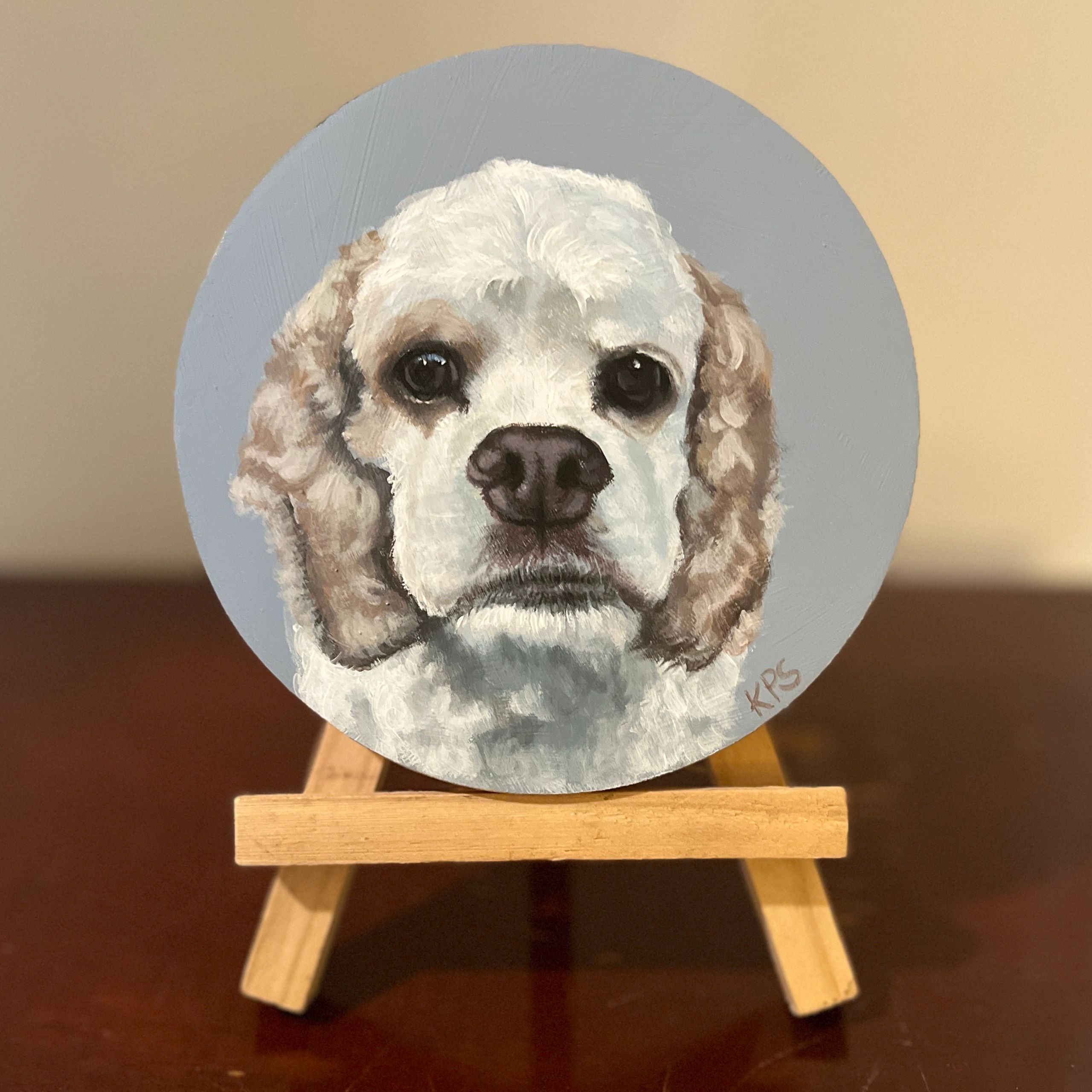 These portraits are painted on 5” wooden rounds and come with a display easel. They make a wonderful gift for birthdays, Mother’s and Father’s Day, or for graduates heading off to college.